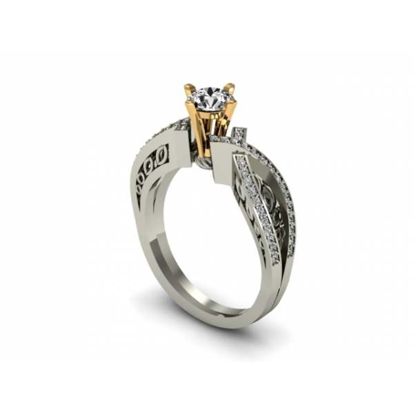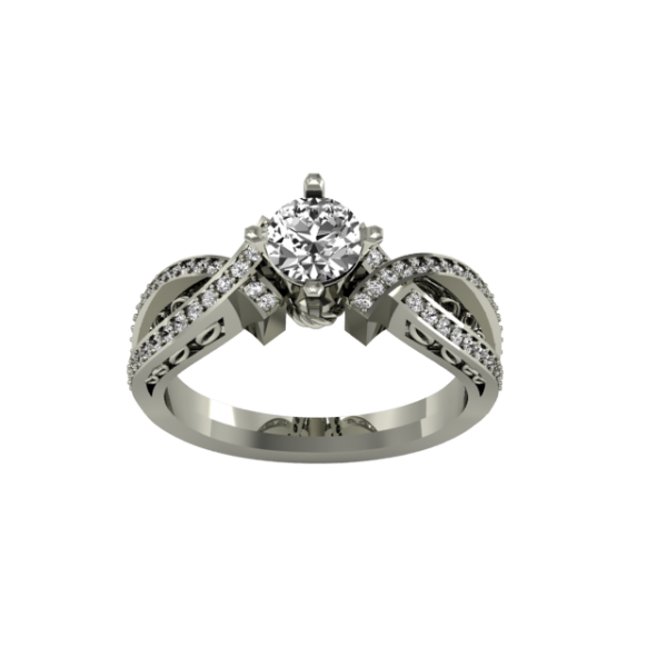 Δαχτυλίδι λευκοχρυσο Κ18 με κεντρικό μπριγιάν 0,50 ct και 56 μπριγιαν 0.01 ct στο πλάι